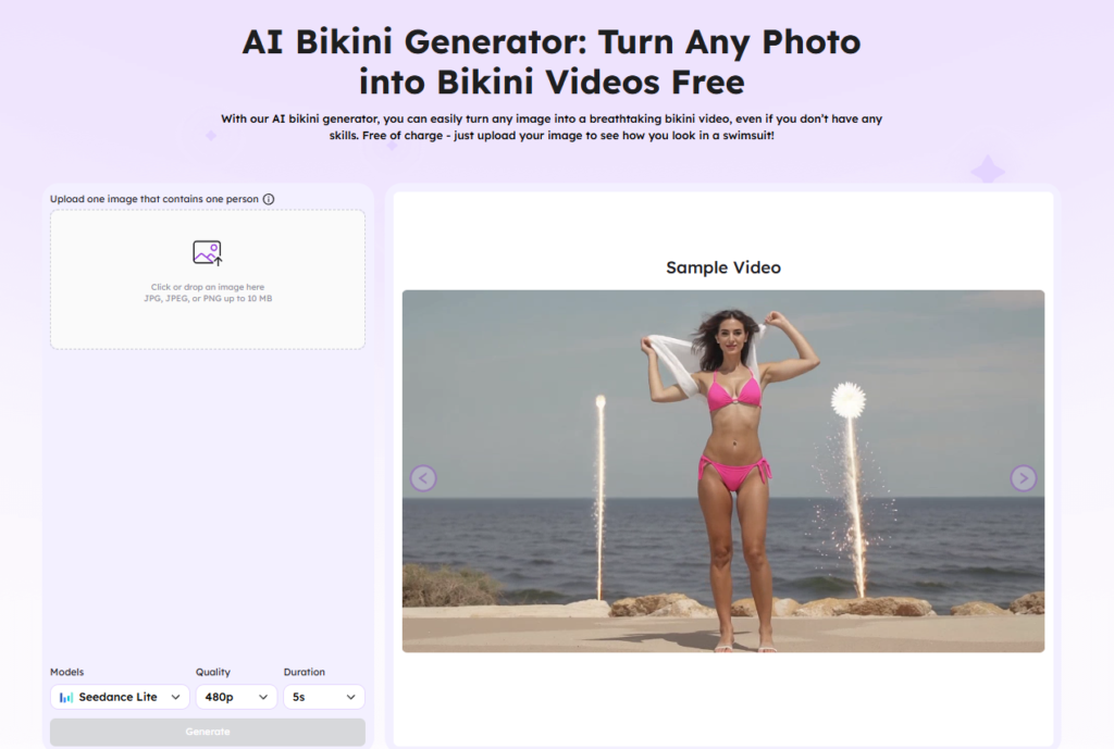 At its core, an AI bikini generator is an image-to-video tool powered by deep learning. You upload a photo—often a selfie or full-body image—and the software automatically identifies the body’s posture, shape, and visible features. Then, using trained models, it digitally overlays a bikini outfit that moves and flows as if it were real fabric.